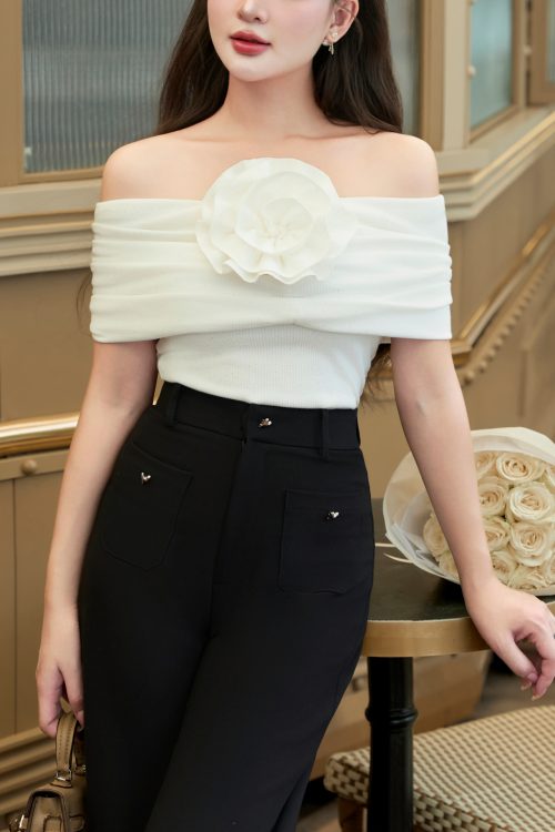 Áo Trễ Vai Viền Bèo Đính Hoa