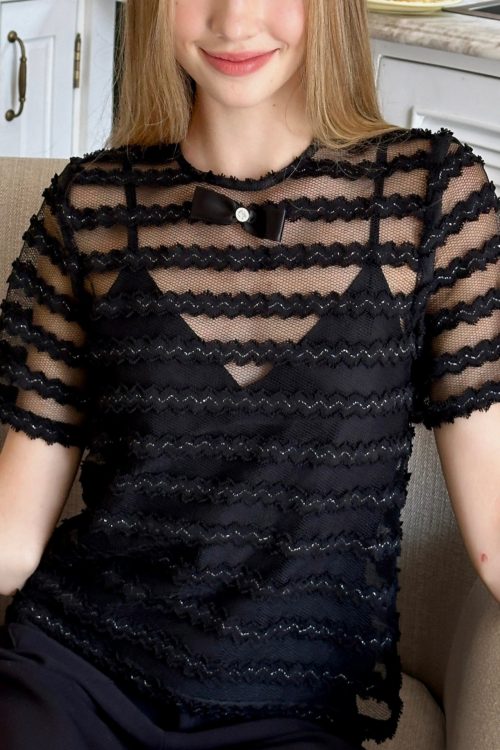 Áo Tay Ngắn Đính Nơ Tiểu Thư