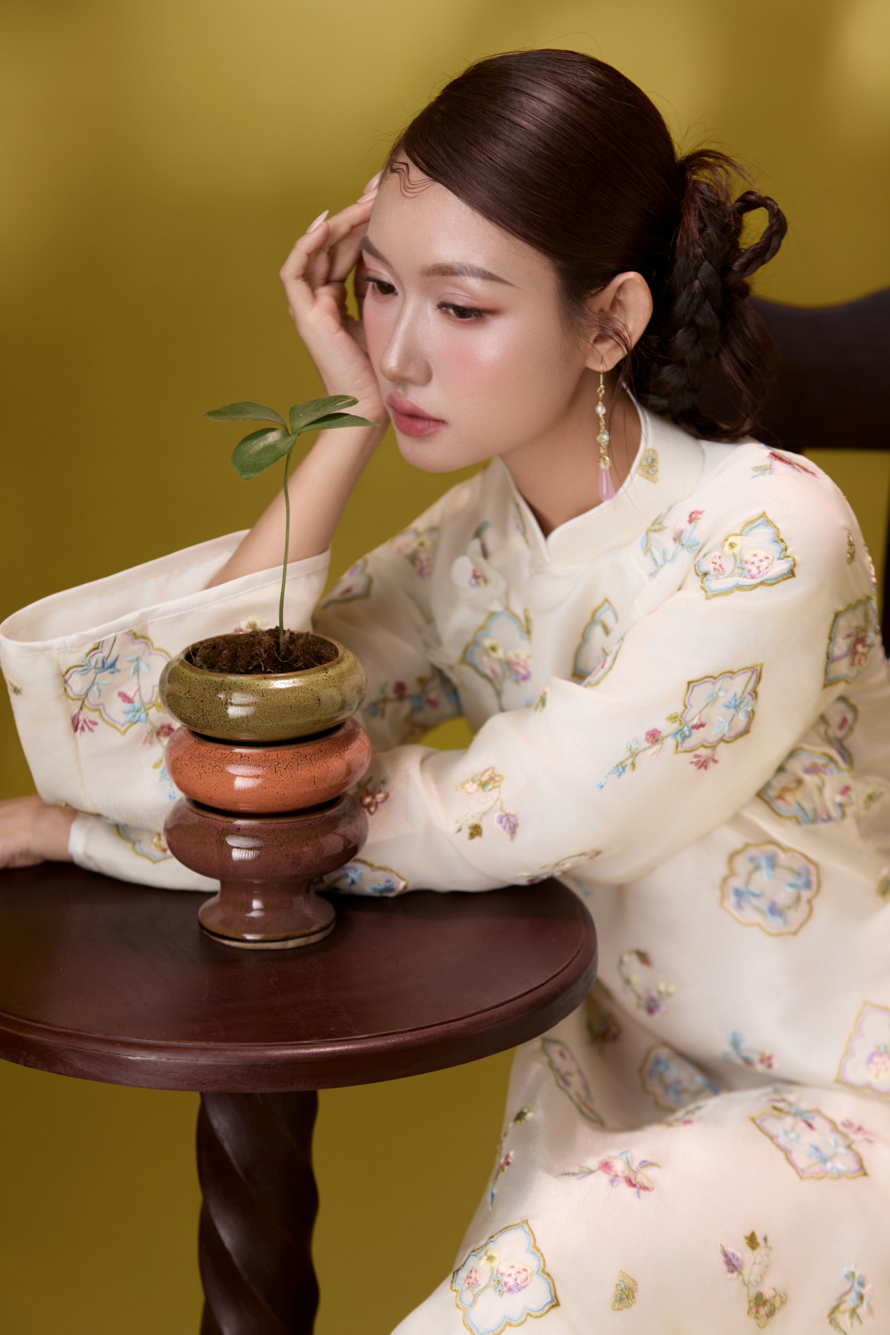 Vị trí hoạ tiết thêu nằm ngẫu nhiên.