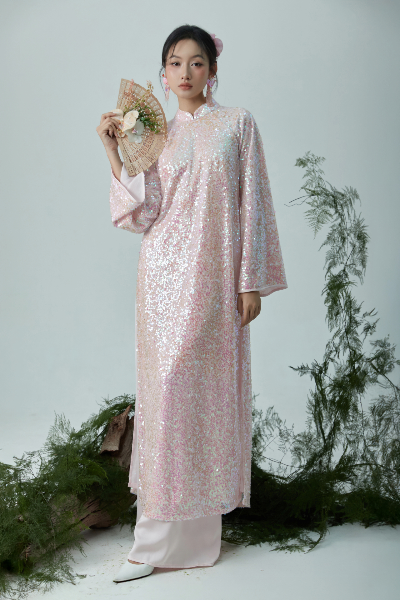 Hồng Sa – “Lụa hồng” áo dài hồng kim sa lung linh, mềm mại như dải lụa đào.