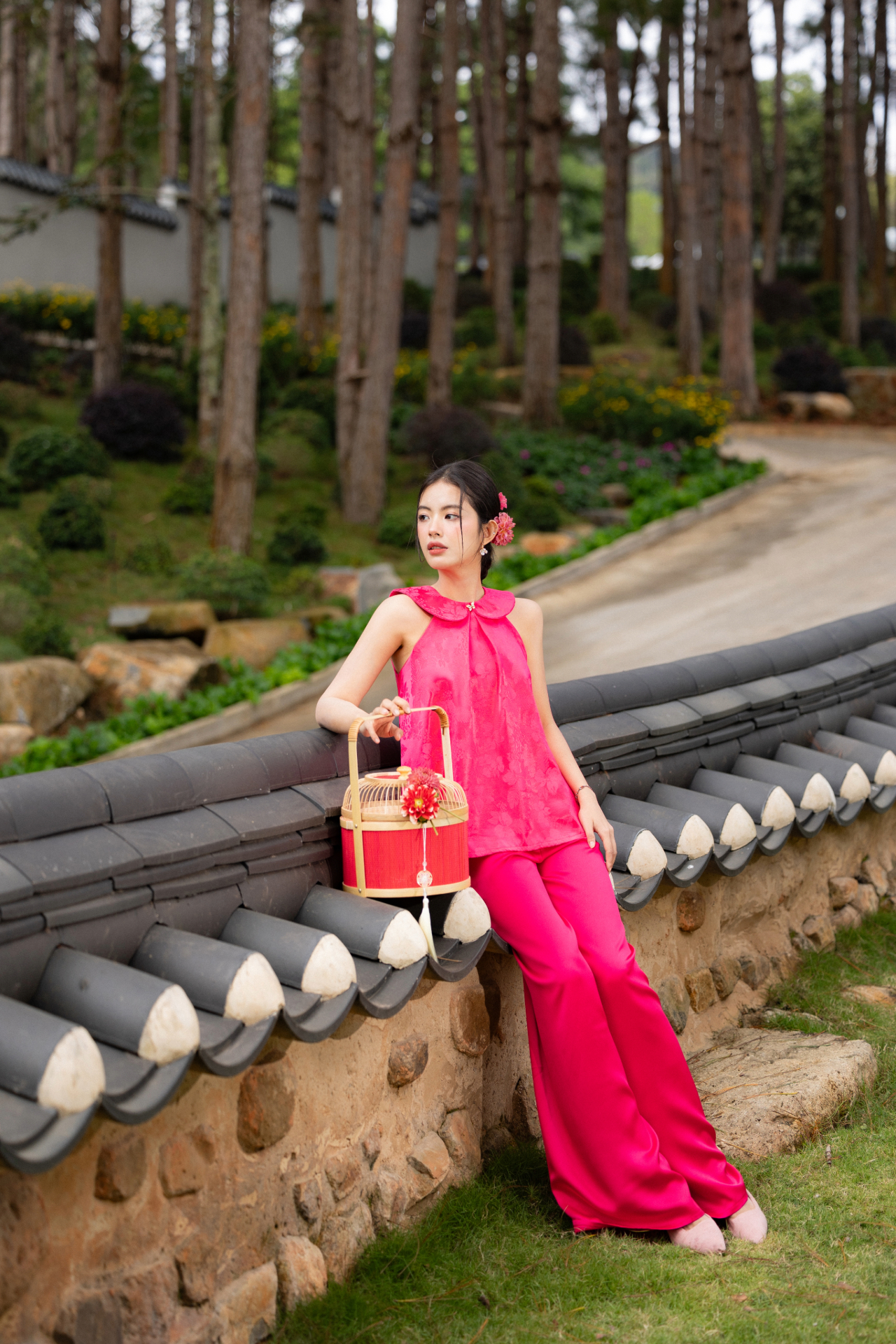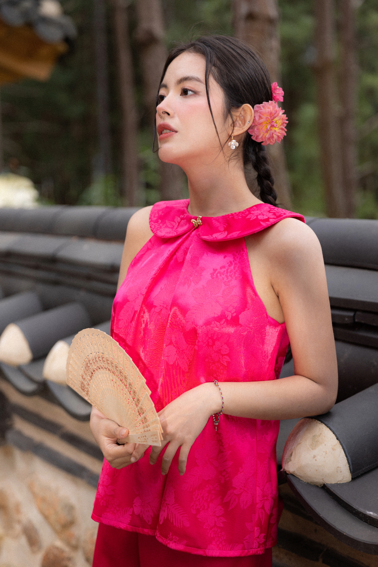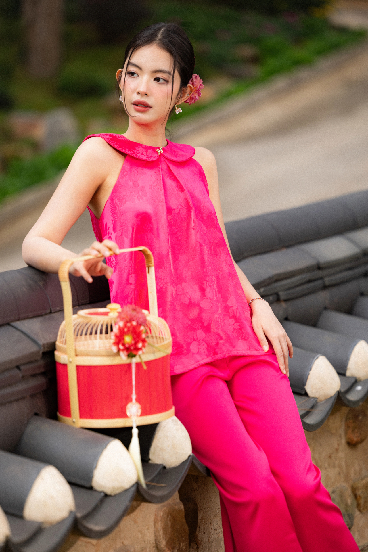Áo Gấm Cổ Sen Màu Hồng Đậm