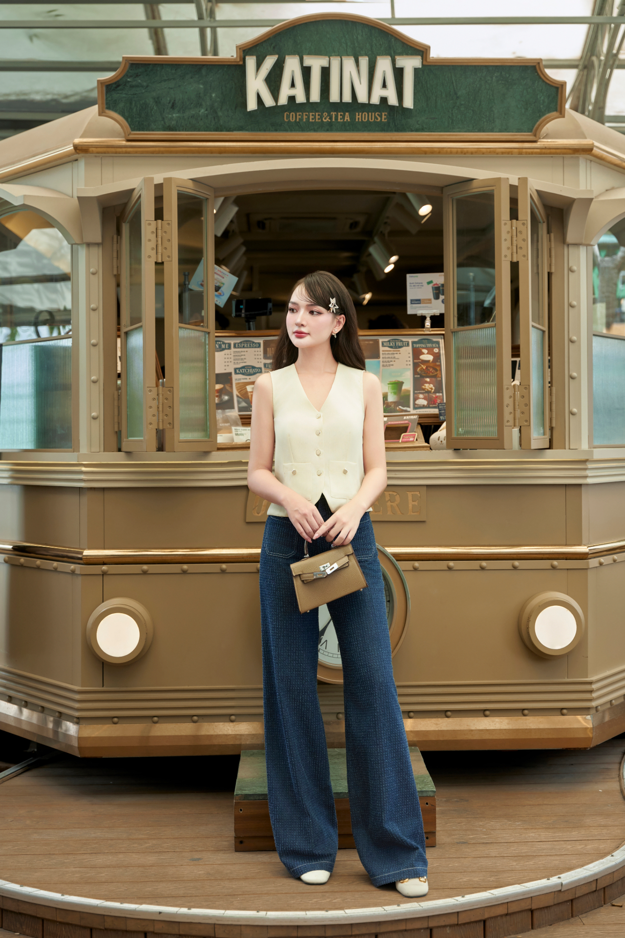 Áo ghile sát nách dáng ngắn, hai túi trước.