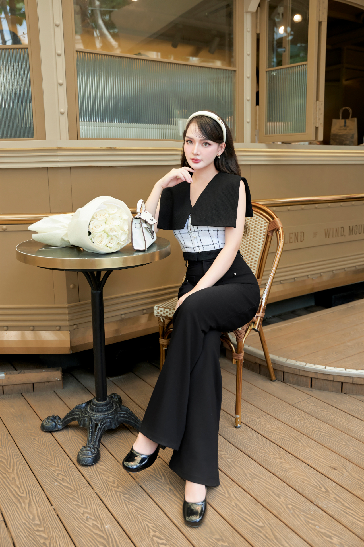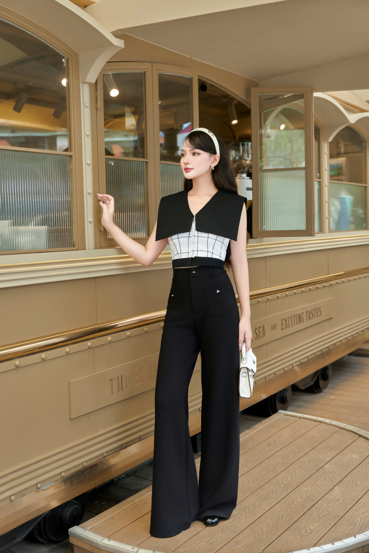 Áo sát nách dáng ngắn, phối cổ trắng đen.
