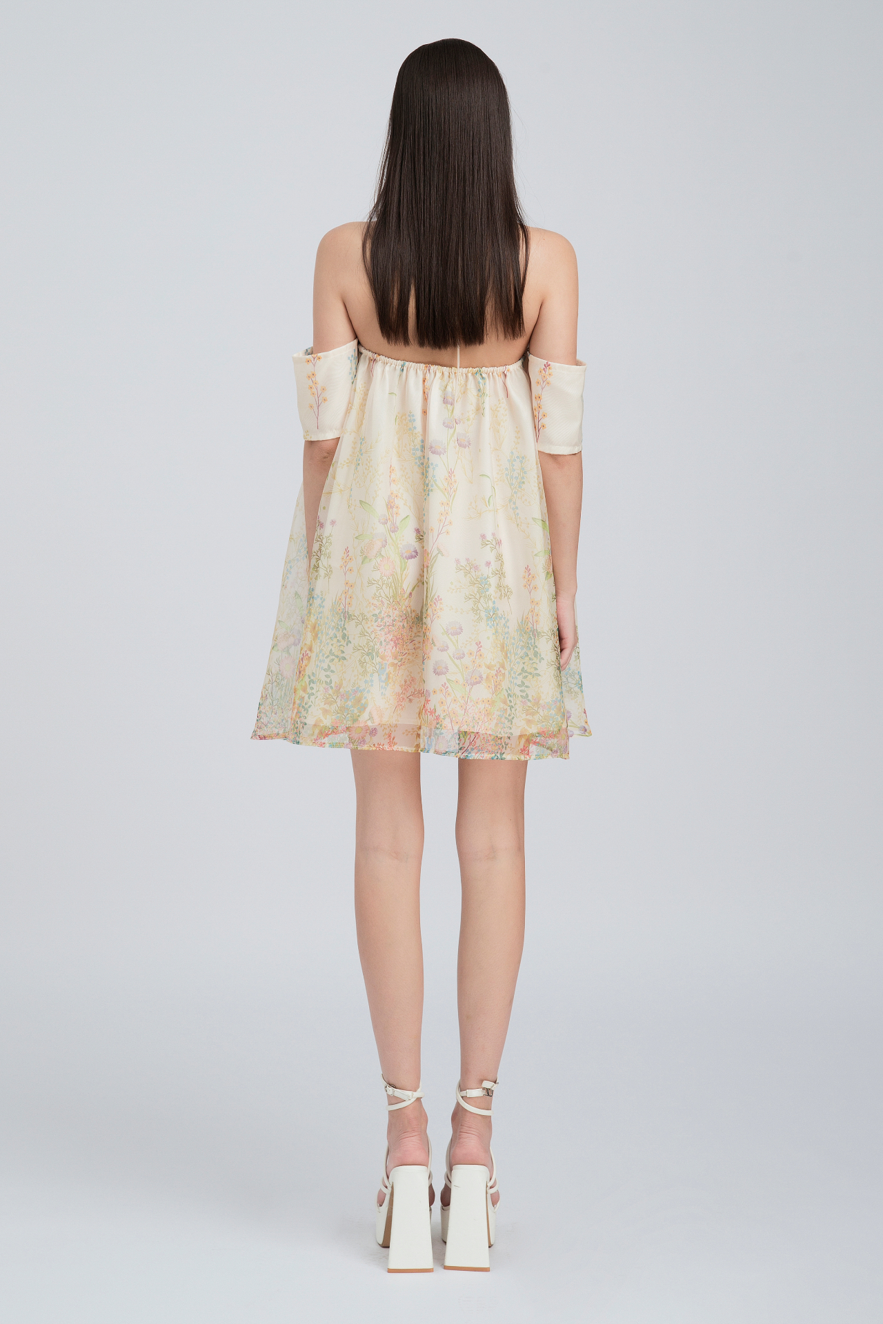 Đầm cổ yếm kèm dây hoa, tay tháo rời.