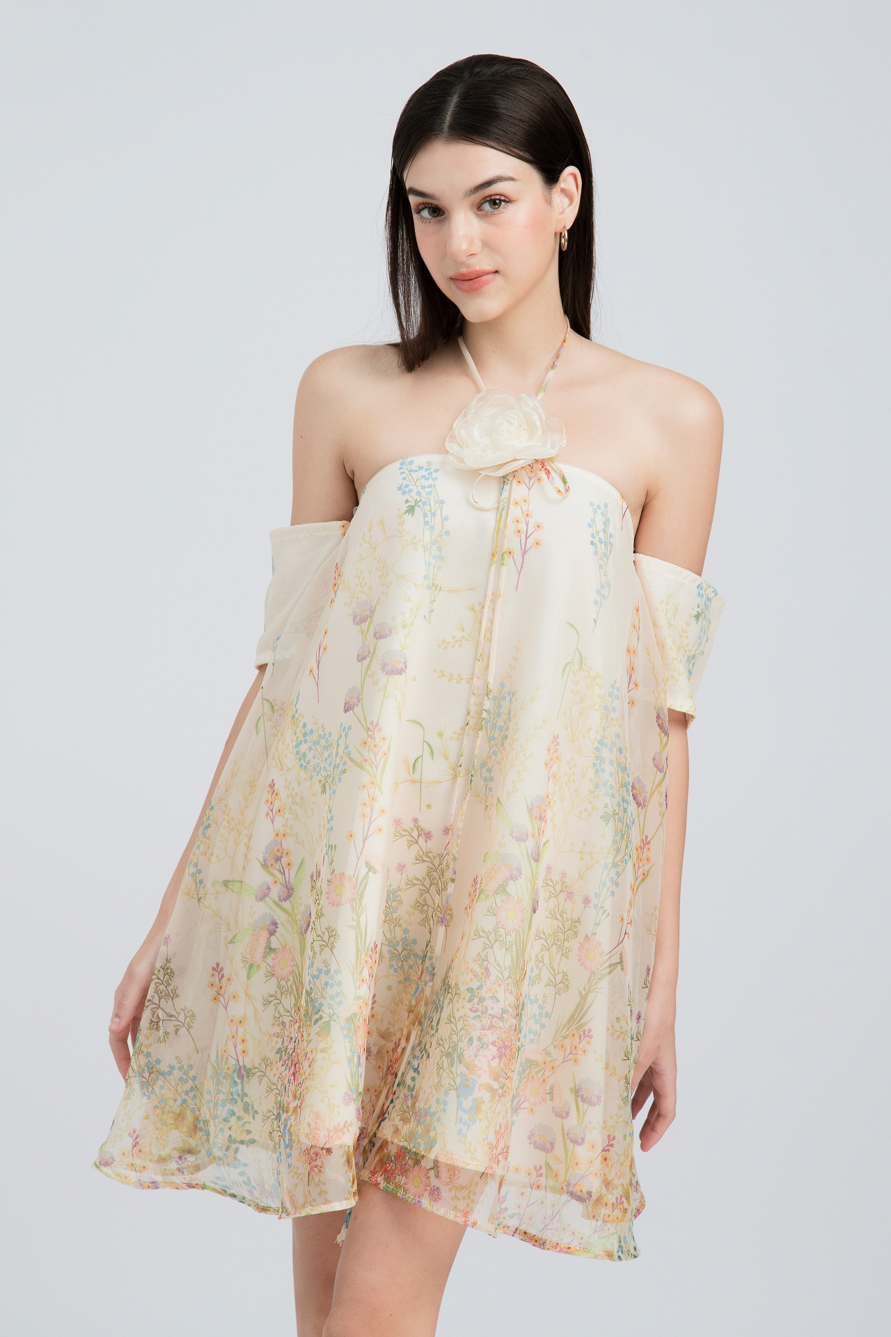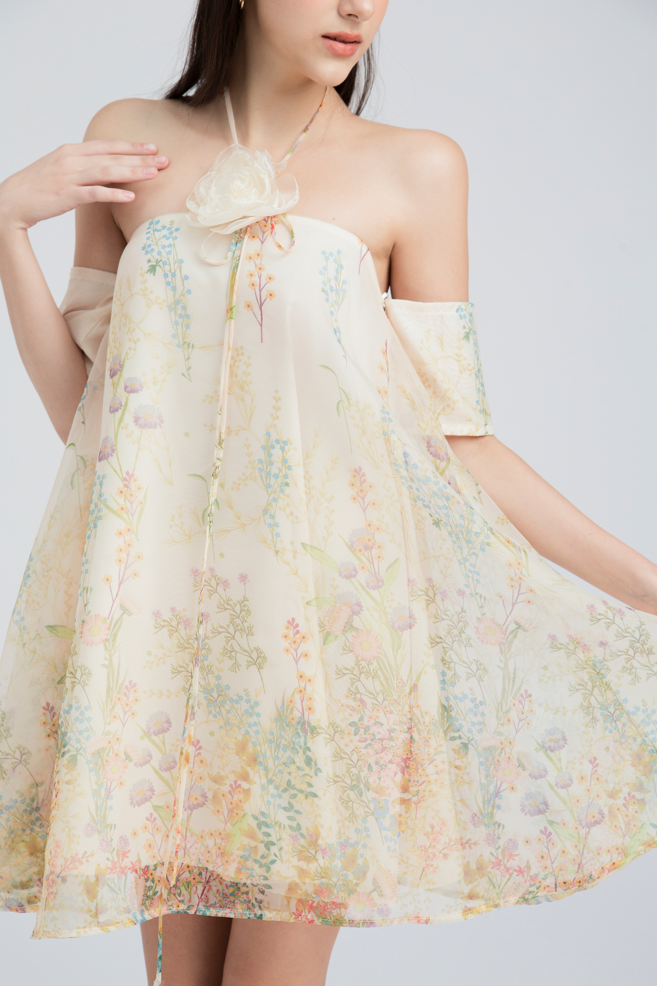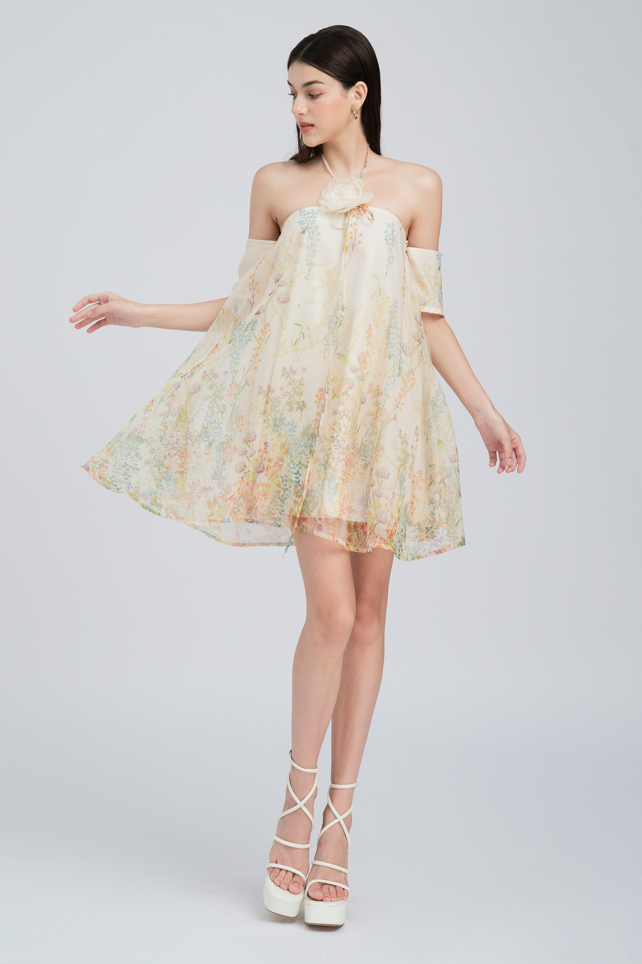 Váy Đầm Hoa Cổ Yếm Màu Vàng