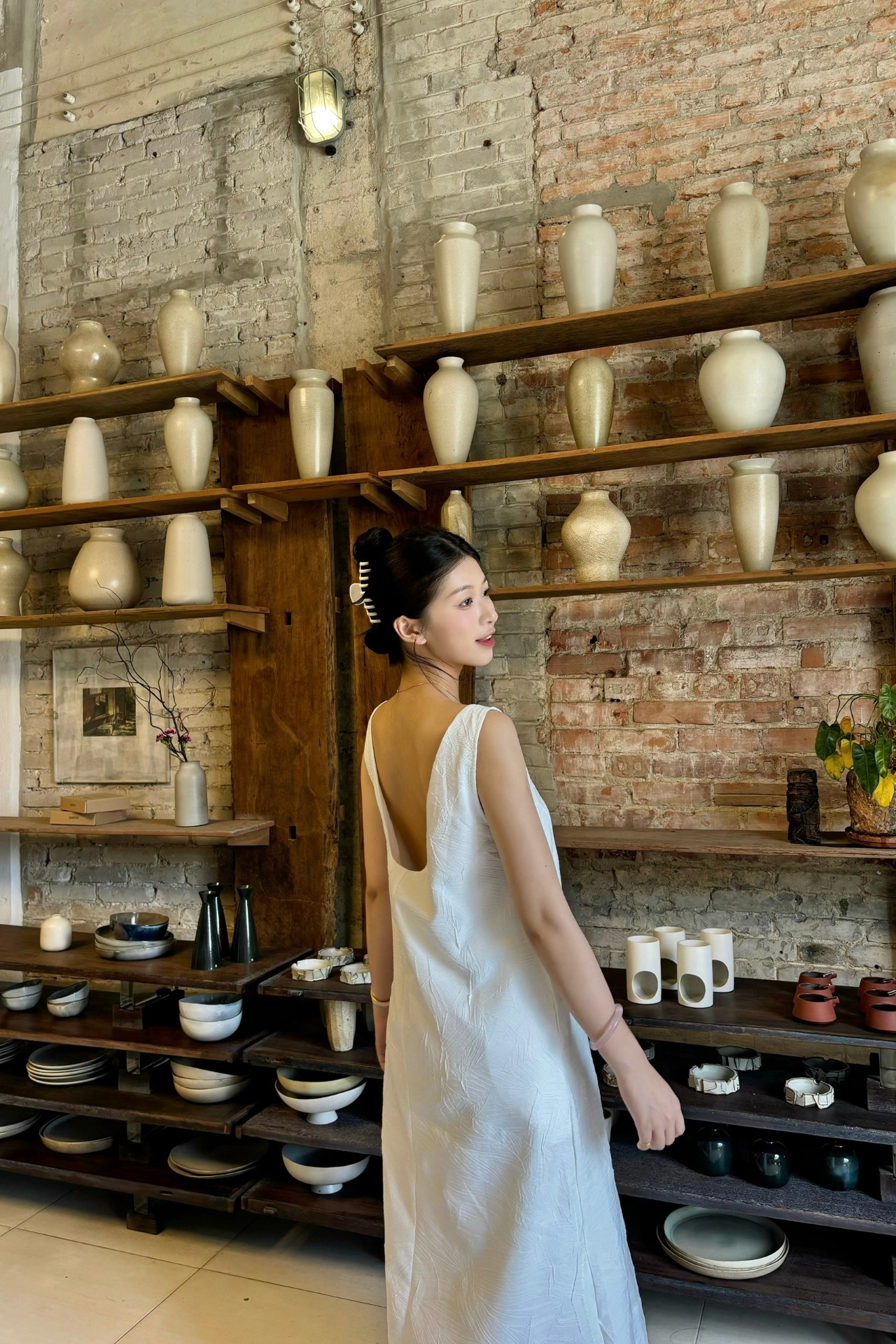 Đầm sát nách dáng rộng, hở lưng.